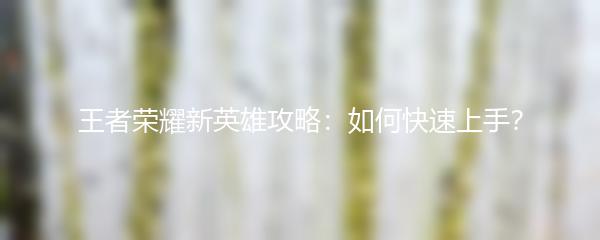 以上就是小编为大家带来的王者荣耀新英雄攻略:如何快速上手?希望对大家有所帮助!
