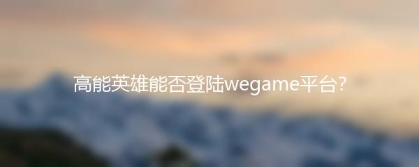 以上就是小编为大家带来的高能英雄能否登陆wegame平台的内容。