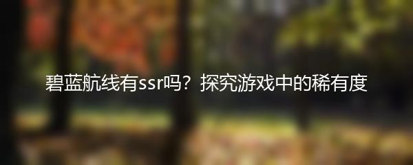 以上就是小编为大家带来的“碧蓝航线有ssr吗?探究游戏中的稀有度”的相关内容,希望对各位玩家有所帮助。