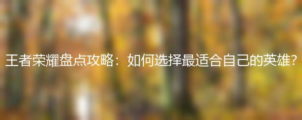 在王者荣耀这款游戏中,选择一个适合自己的英雄是非常重要的。那么,如何才能找到最适合自己的英雄呢?