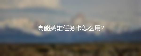 高能英雄任务卡是游戏中非常重要的道具,正确的使用方法能够帮助玩家更快的提升实力。下面就让我们来看看如何正确地使用高能英雄任务卡:
