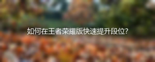 想要在王者荣耀版中快速提升段位吗?下面小编为你分享几个有效的方法: