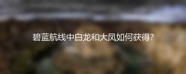 以上就是小编为大家带来的“碧蓝航线中白龙和大凤如何获得?”的相关攻略啦,赶紧行动起来吧!