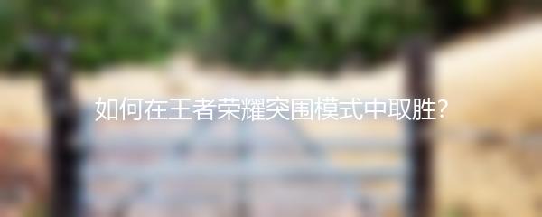 以上就是小编为大家带来的如何在王者荣耀突围模式中取胜的攻略。