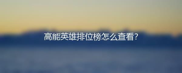 以上就是小编为大家带来的高能英雄排位榜怎么查看的攻略,希望能帮助到大家!