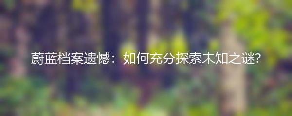 蔚蓝档案,一个神秘的世界,不断引发人们对未知的好奇与探索欲望。然而,在这广袤的未知领域中,是否存在遗憾,我们又该如何充分探索这些未知之谜呢?