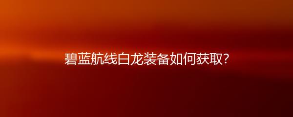 碧蓝航线中白龙装备是舰娘们梦寐以求的稀有装备之一,想要获取它们需要一定的技巧和耐心。下面就来看看如何获取碧蓝航线白龙装备: