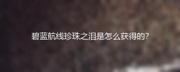 以上就是小编为大家带来的碧蓝航线珍珠之泪是怎么获得的?希望以上攻略对大家有所帮助,祝各位航海士在碧蓝航线的冒险之旅中取得更好的成绩!