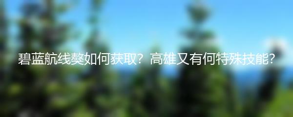 碧蓝航线獒如何获取?高雄又有何特殊技能?以上就是小编为大家带来的内容。