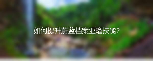 以下是一些提升蔚蓝档案亚瑠技能的攻略: