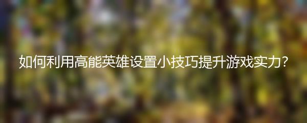 以上就是小编为大家带来的如何利用高能英雄设置小技巧提升游戏实力的相关内容,希望对大家有所帮助!