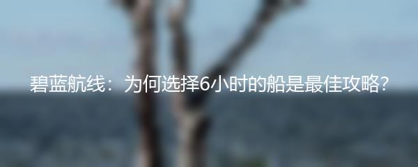 以上就是小编为大家带来的碧蓝航线:为何选择6小时的船是最佳攻略的内容,希望对玩家们有所帮助。