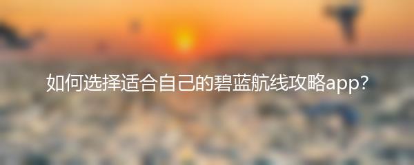 以上就是小编为大家带来的如何选择适合自己的碧蓝航线攻略app的内容。希望对大家有所帮助!