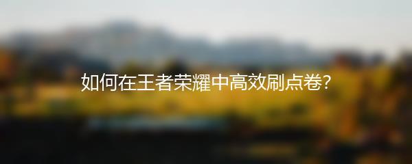以上就是小编为大家带来的如何在王者荣耀中高效刷点卷的攻略。记得多多尝试这些方法,相信你一定可以轻松获得更多的点卷!