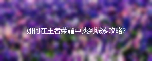 以上就是小编为大家带来的如何在王者荣耀中找到线索攻略的一些建议,希望对大家有所帮助!