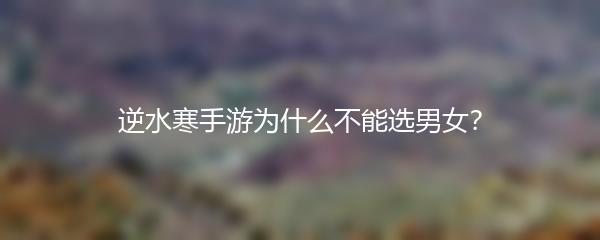 以上就是小编为大家带来的"逆水寒手游为什么不能选男女?"的相关内容。