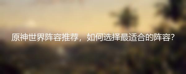 想要在原神世界中取得胜利,选择一个合适的阵容至关重要。那么,如何选择最适合的阵容呢?