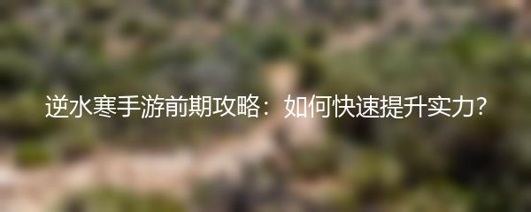 以上就是小编为大家带来的逆水寒手游前期攻略:如何快速提升实力?