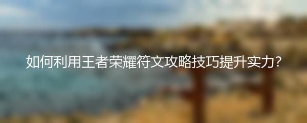 想要在王者荣耀中脱颖而出?不妨尝试利用符文攻略技巧来提升自己的实力。下面为您介绍具体方法: