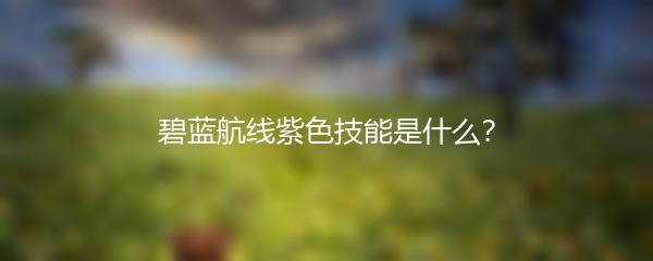 以上就是小编为大家带来的“碧蓝航线紫色技能是什么?”的攻略文章。