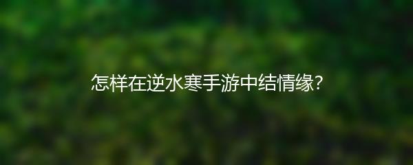 以上就是小编为大家带来的怎样在逆水寒手游中结情缘的攻略,希望能帮助大家在游戏中结交到更多志同道合的好朋友!