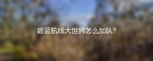 想要在碧蓝航线大世界中更好地体验游戏?那就学会如何加入队伍吧!