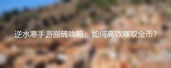 以上就是小编为大家带来的逆水寒手游搬砖攻略:如何高效赚取金币?希望对大家有所帮助!