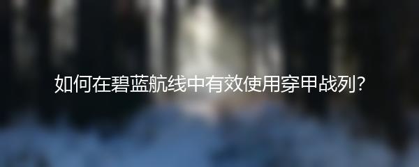 以上就是小编为大家带来的如何在碧蓝航线中有效使用穿甲战列的攻略!
