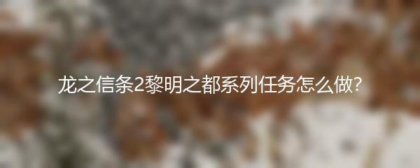 以上就是小编为大家带来的"龙之信条2黎明之都系列任务怎么做?"。