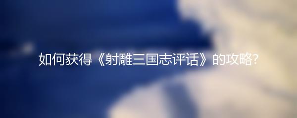 想要获得《射雕三国志评话》的攻略吗?接下来小编将为大家一一介绍。
